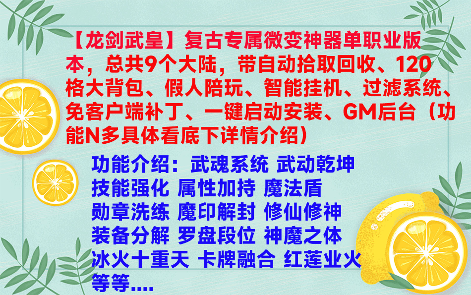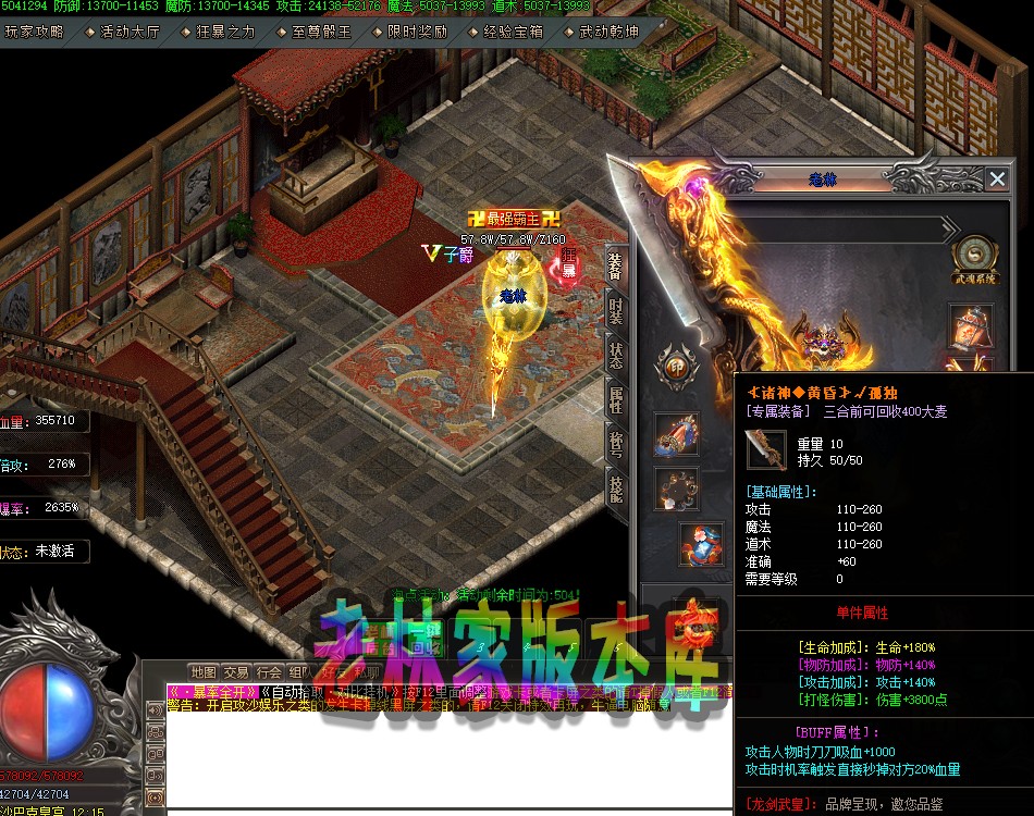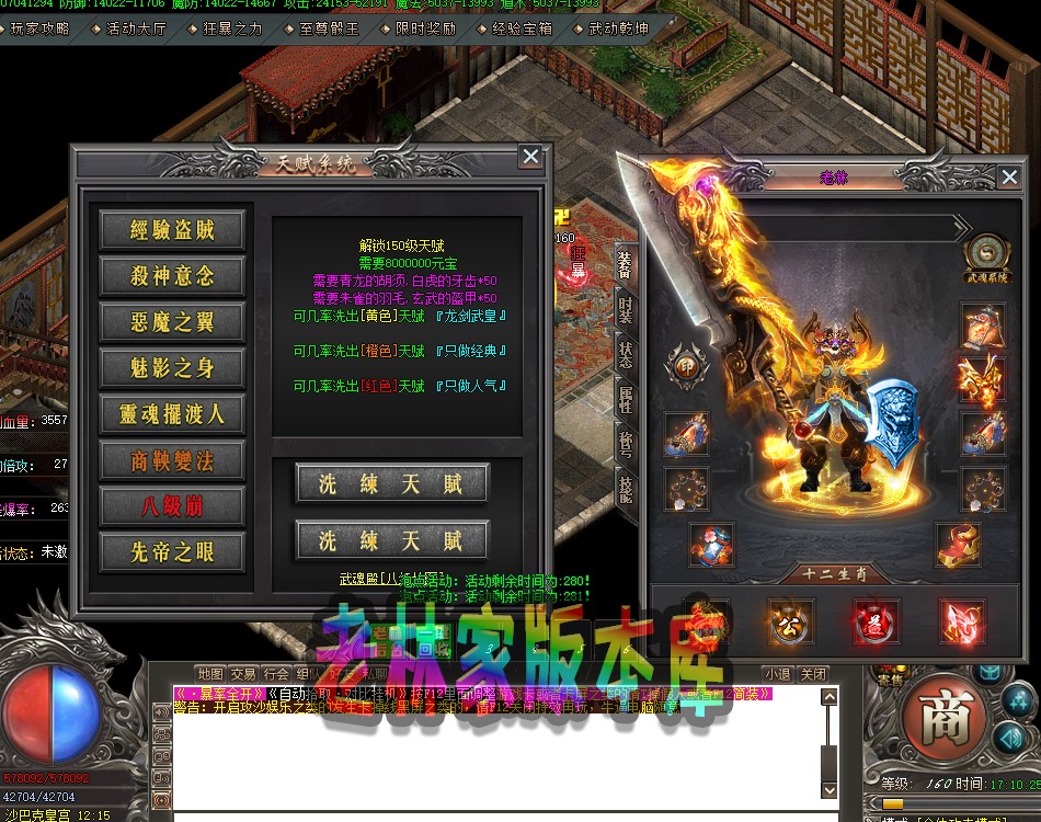传奇单机版荒古之城龙剑武皇复古专属微变神器单职业武...