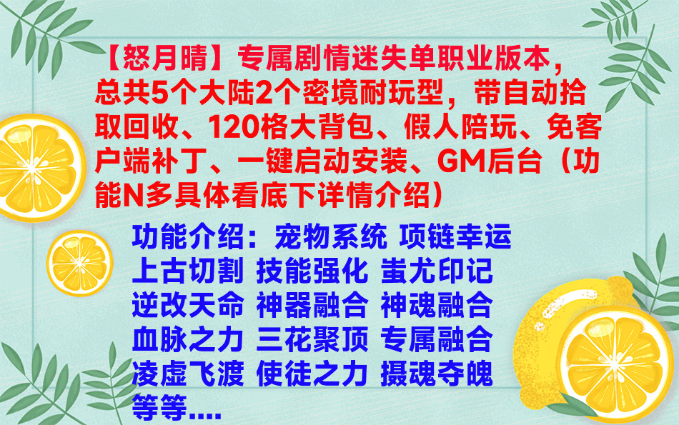 怒月晴专属剧情迷失单职业传奇电脑单机上古切割宠物系...